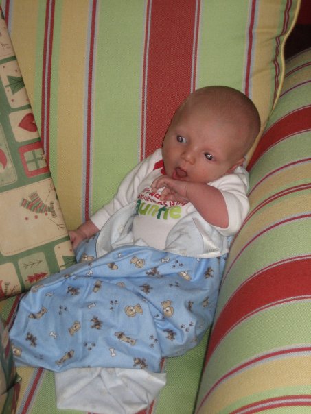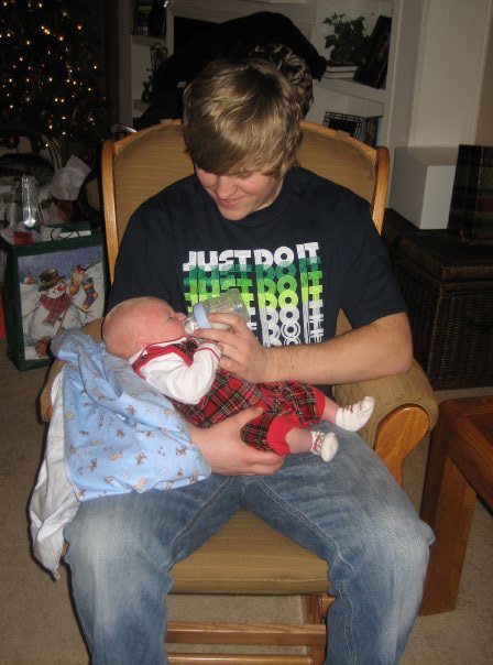 - Zach attempting to feed Mason, Christmas of 2009.