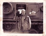 He stands in front of a muddy M113